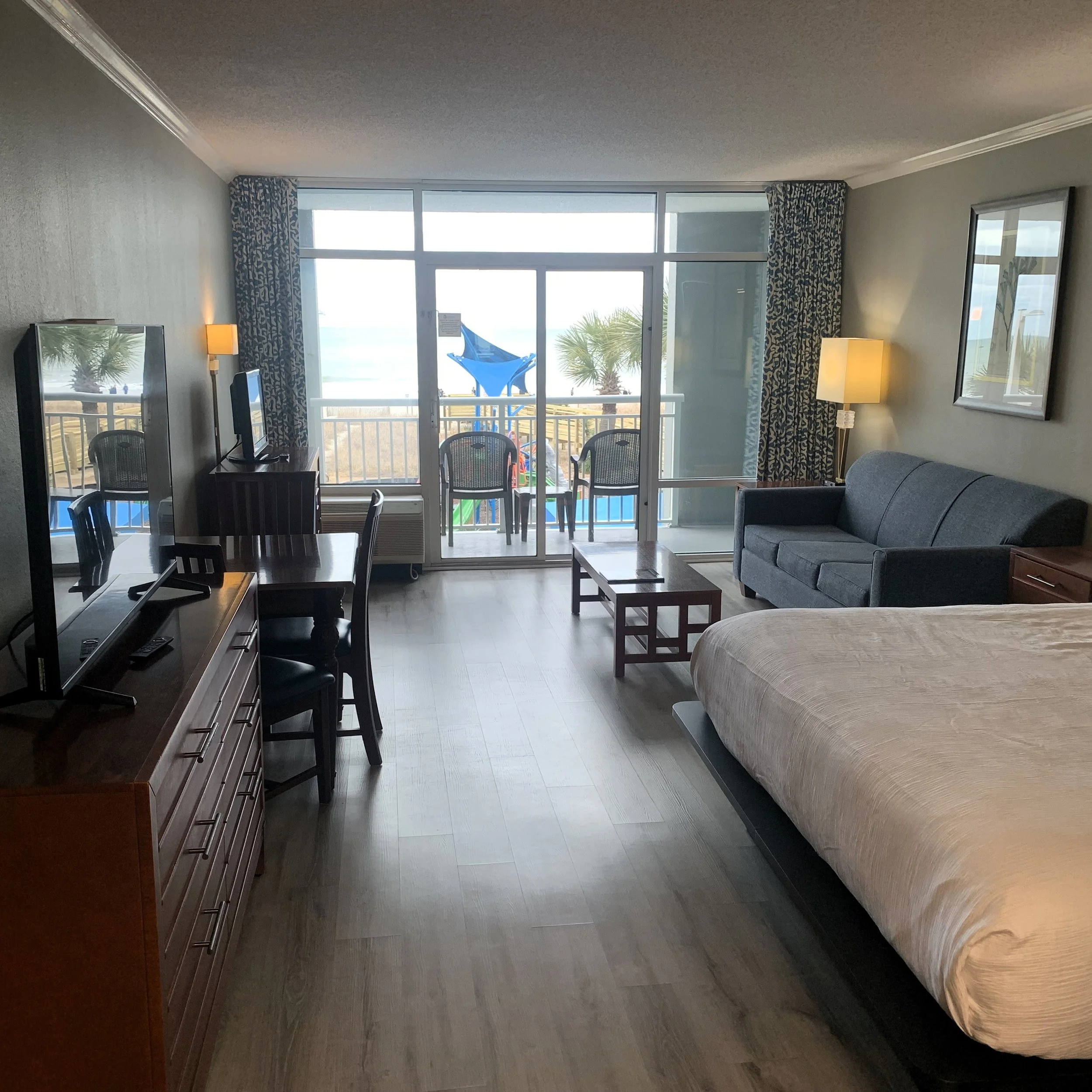 Among the best family-friendly resorts in Myrtle Beach, Dunes Village offers comfortable oceanfront accommodations and the area’s best indoor water parks. The resort is conveniently located just north of downtown, less than 3 miles from the Boardwalk and in easy reach of the area’s leading attractions. Discover all the reasons to choose our 2nd floor beachfront King Suite for your next Grand Strand getaway!